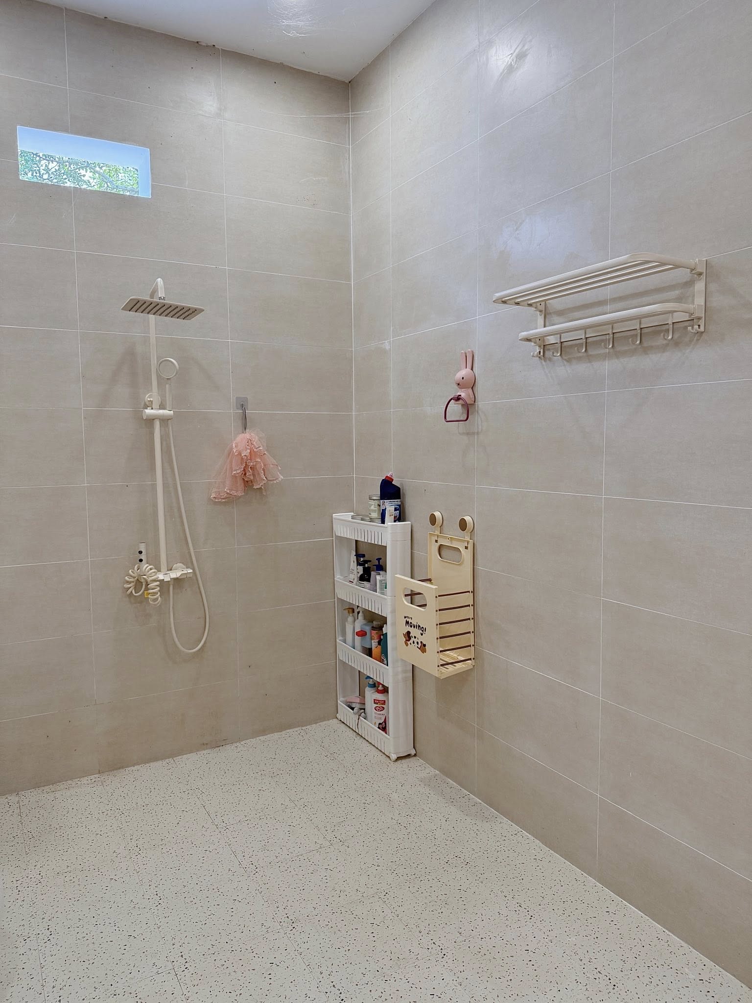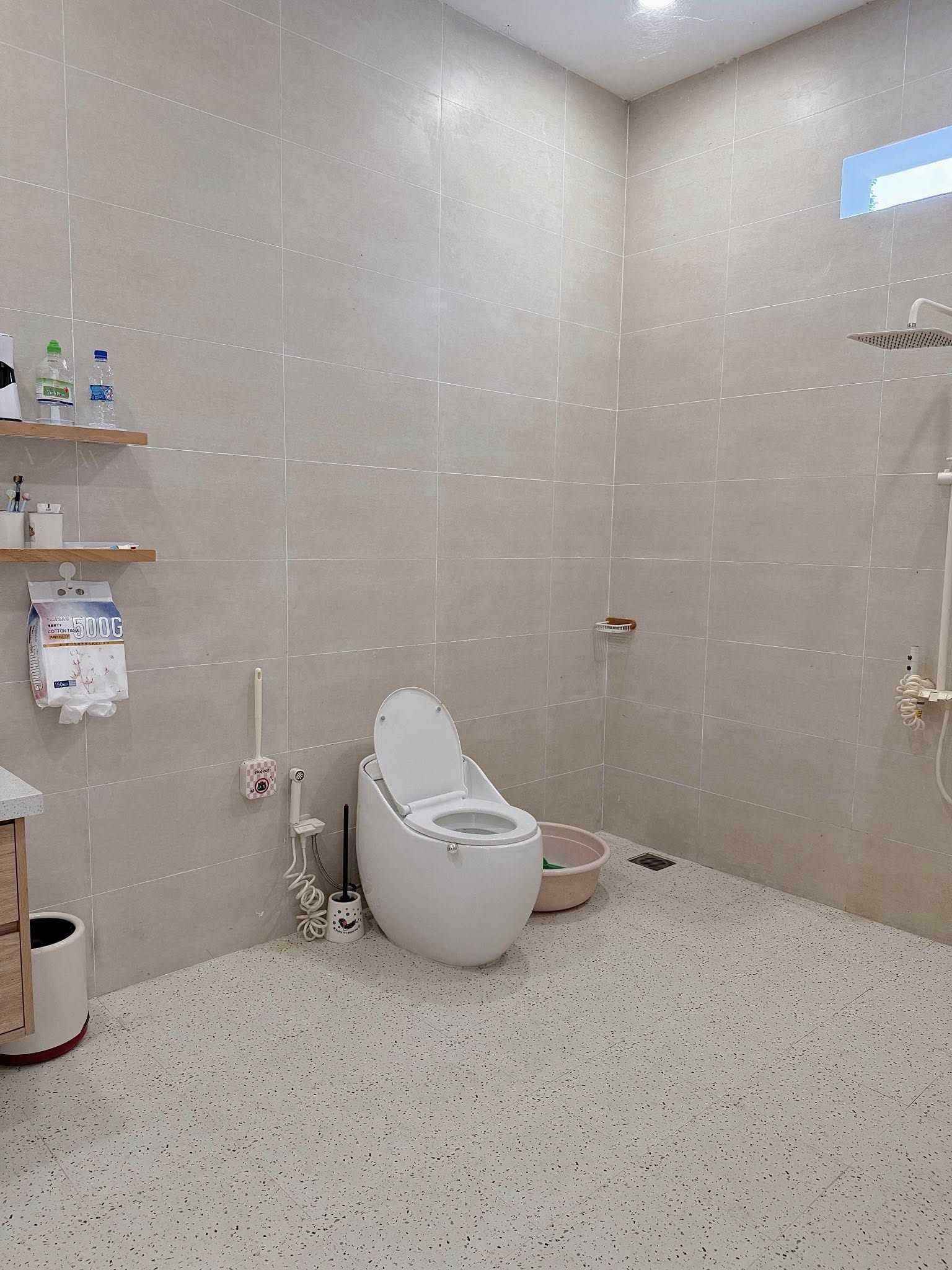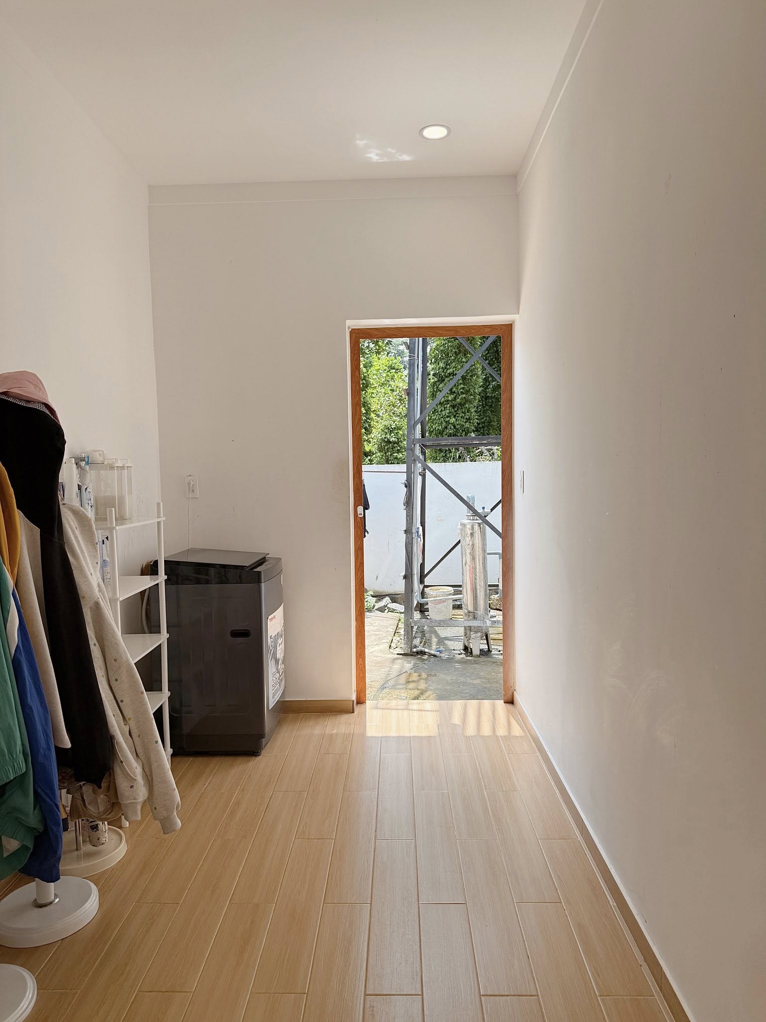 Phía sau nhà là khu giặt, nhà vệ sinh chung và một khoảng sân phơi nhỏ. Dù diện tích không lớn, nhưng từng mét vuông đều được tận dụng thông minh. Cô bảo: “Ngày xưa ít ai xây nhà cấp bốn kiểu này, chứ giờ nhiều lắm - vừa rẻ mà vừa xinh.”