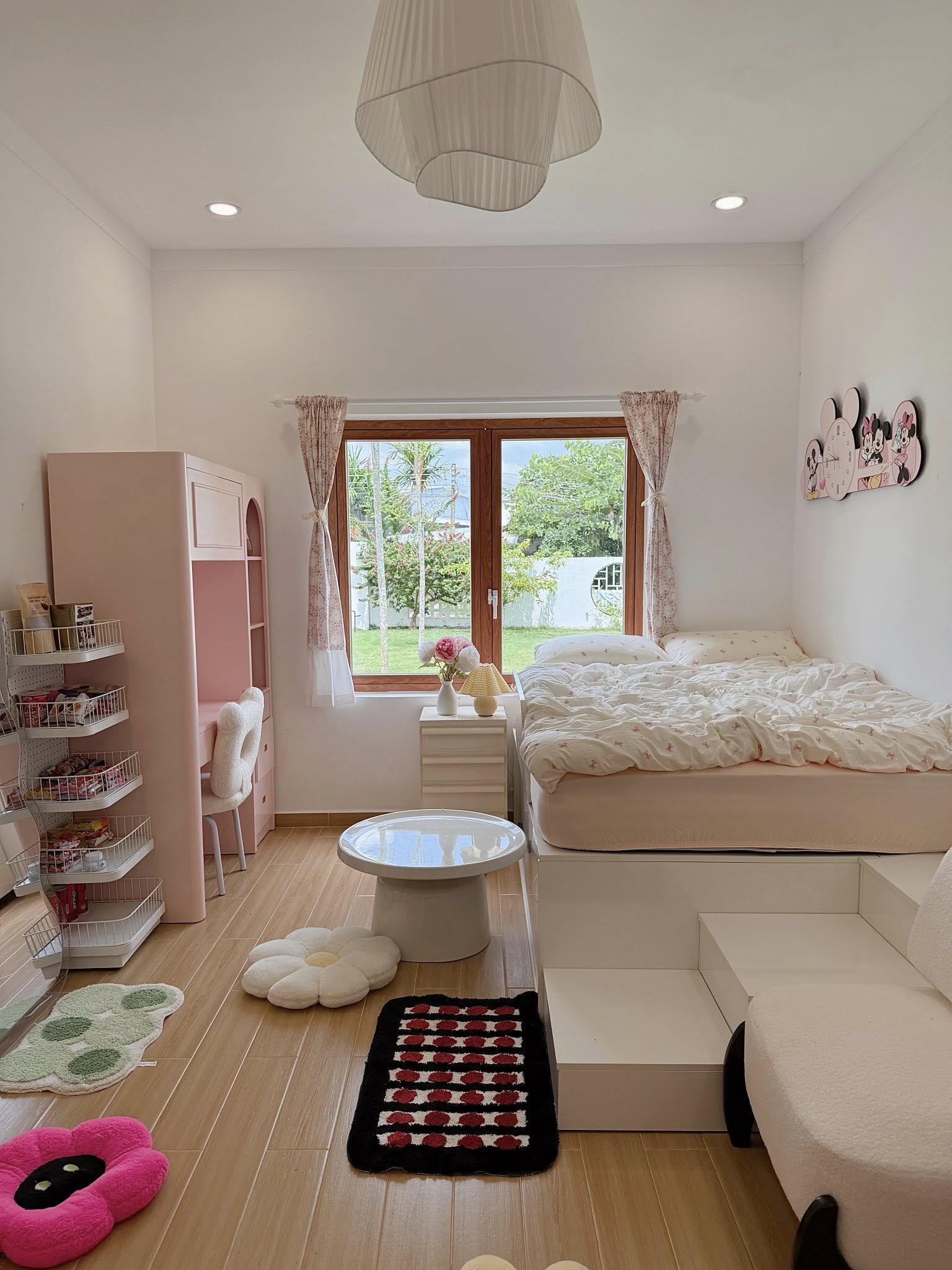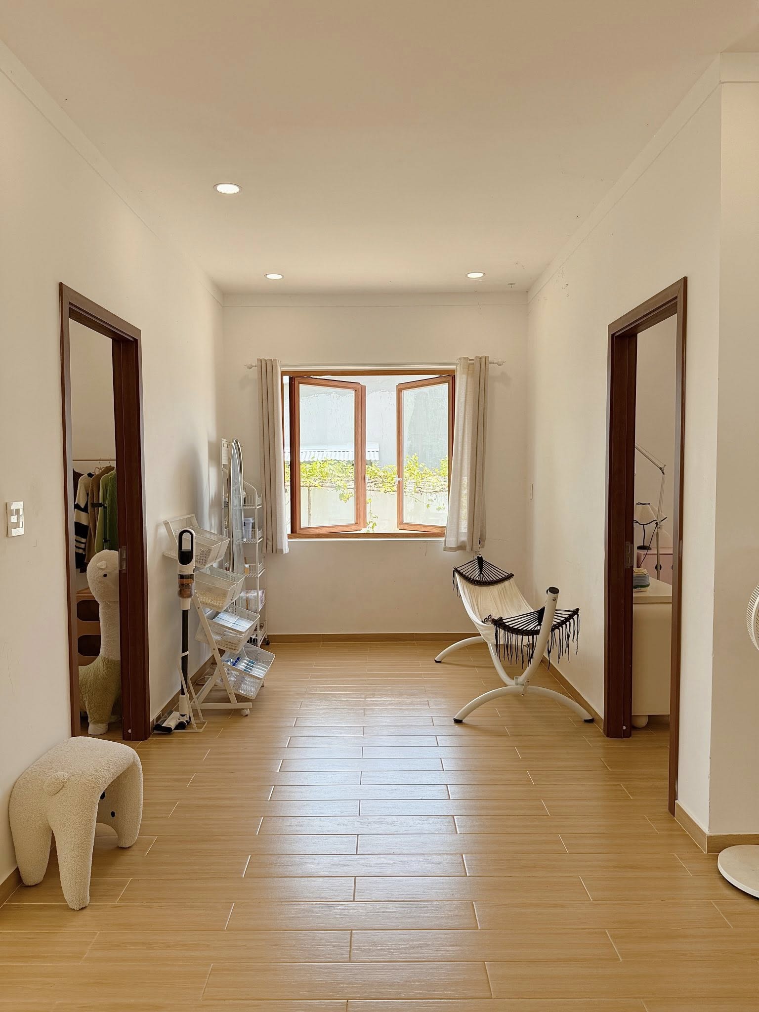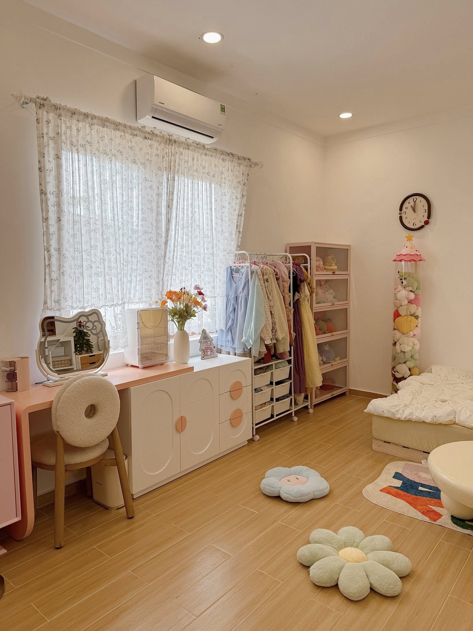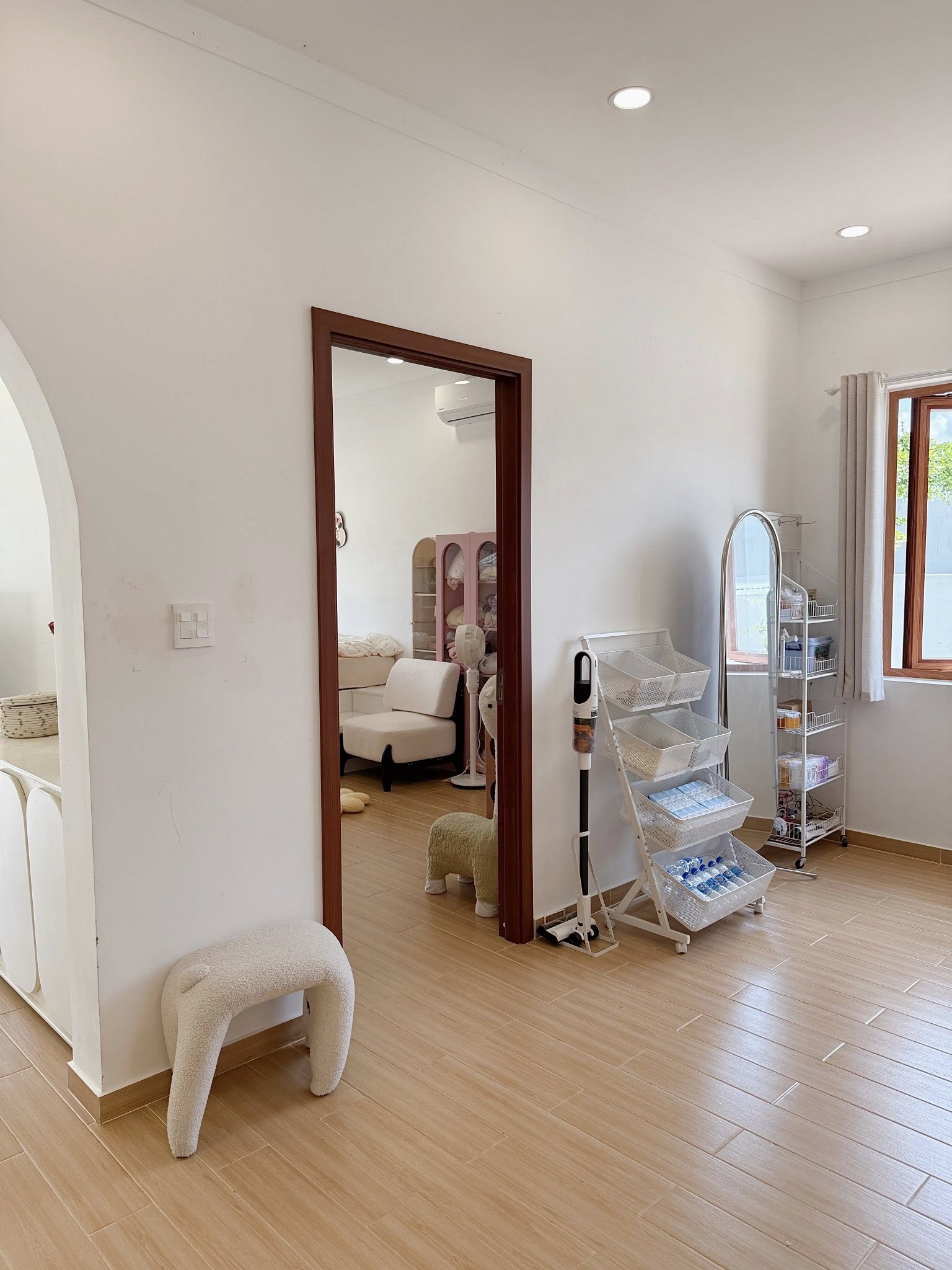 Ba phòng ngủ được bố trí hợp lý, mỗi phòng mang một nét riêng. Căn phòng yêu thích nhất của cô nằm cạnh phòng khách, có cửa sổ nhìn ra sân vườn và thường được dùng làm góc quay video. Chính nơi đây, cô chia sẻ những câu chuyện nhỏ về cuộc sống, về cách sắp xếp không gian sao cho ấm cúng và “có hồn”.