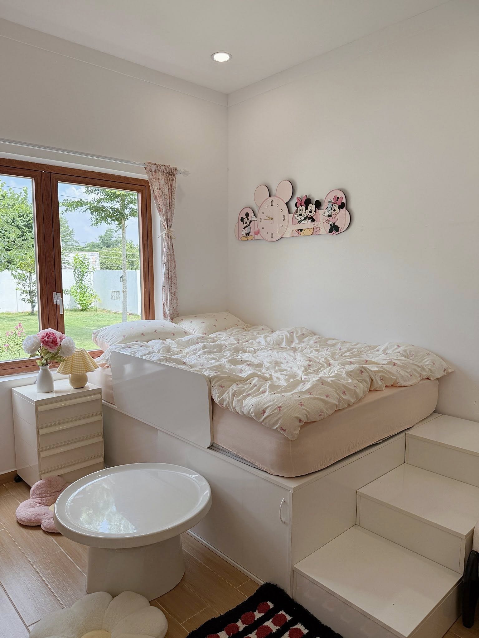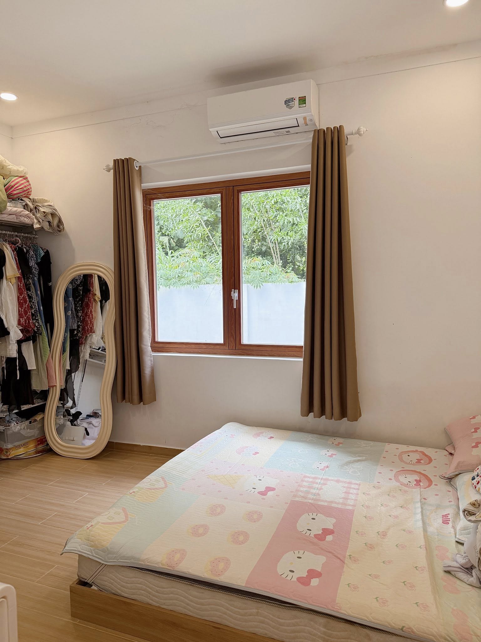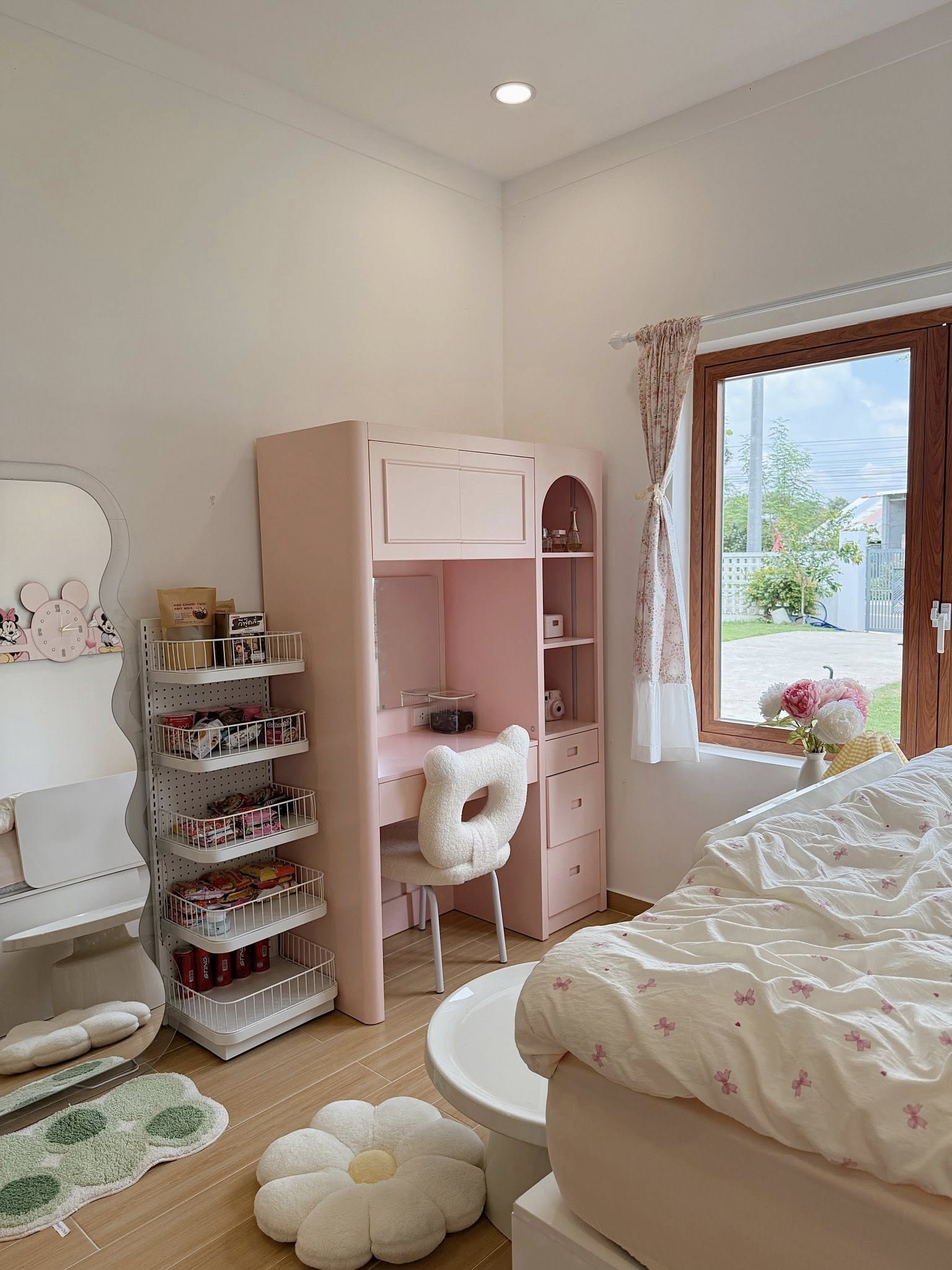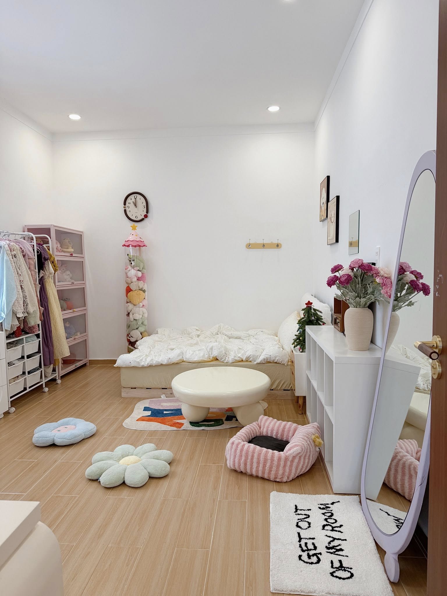 Ba phòng ngủ được bố trí hợp lý, mỗi phòng mang một nét riêng. Căn phòng yêu thích nhất của cô nằm cạnh phòng khách, có cửa sổ nhìn ra sân vườn và thường được dùng làm góc quay video. Chính nơi đây, cô chia sẻ những câu chuyện nhỏ về cuộc sống, về cách sắp xếp không gian sao cho ấm cúng và “có hồn”.