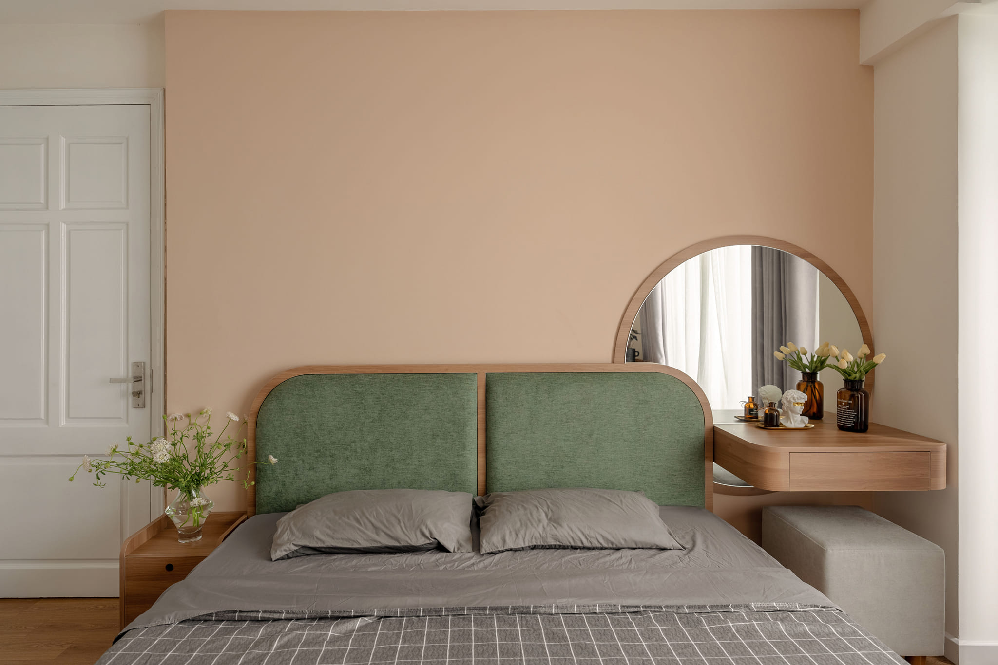 Phòng ngủ chính được thiết kế nội thất theo tone màu thống nhất với tổng thể căn hộ.
