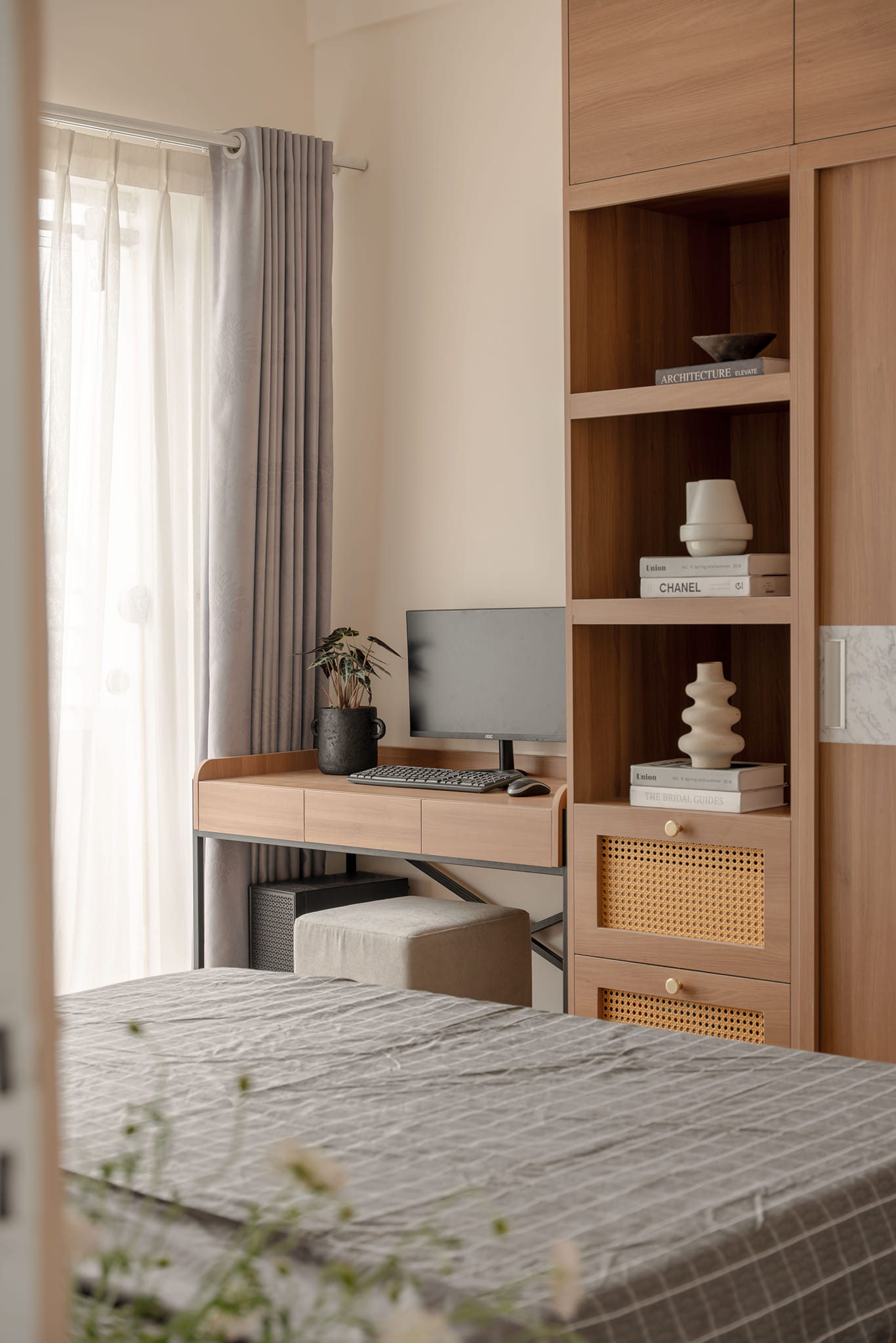 Khu vực làm việc tại nhà được bố trí gọn gàng trong không gian phòng ngủ.