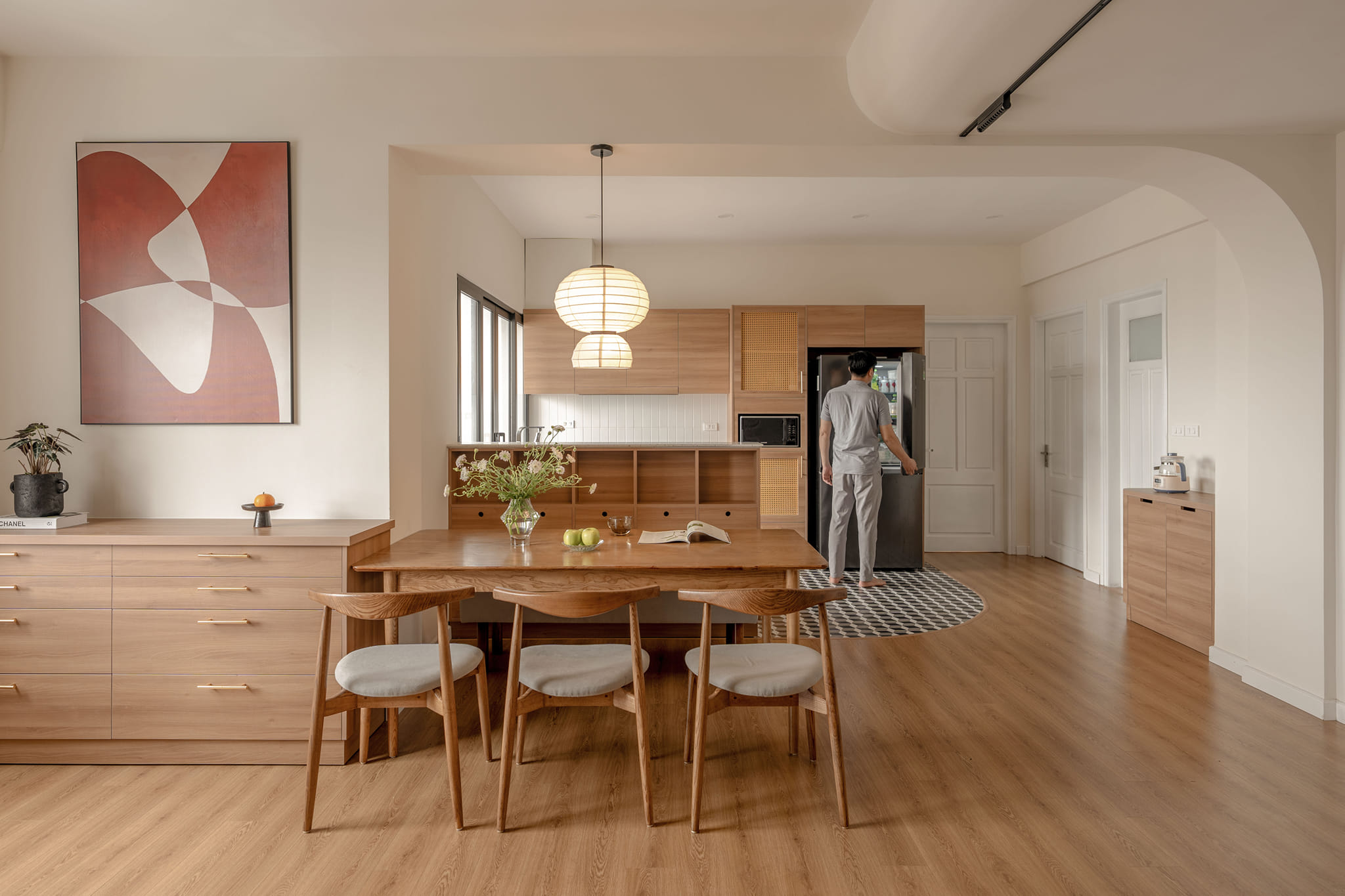 Dựa trên nhu cầu và mong muốn thực tế của gia chủ, nhóm kiến trúc sư đã chọn phương án sử dụng phong cách thiết kế chủ đạo là Japandi (kết hợp giữa cảm hứng Nhật Bản và Bắc Âu) vào công trình.