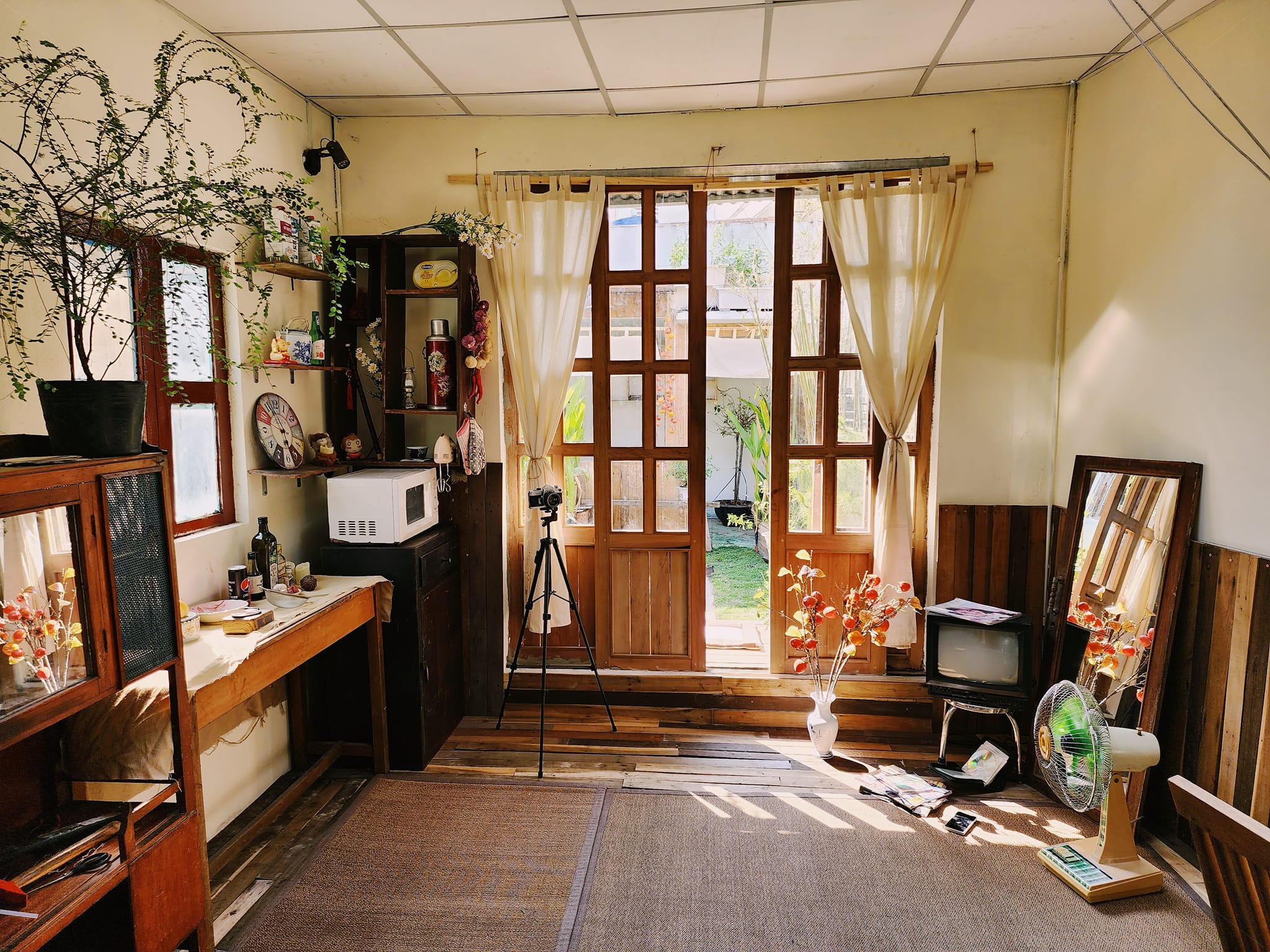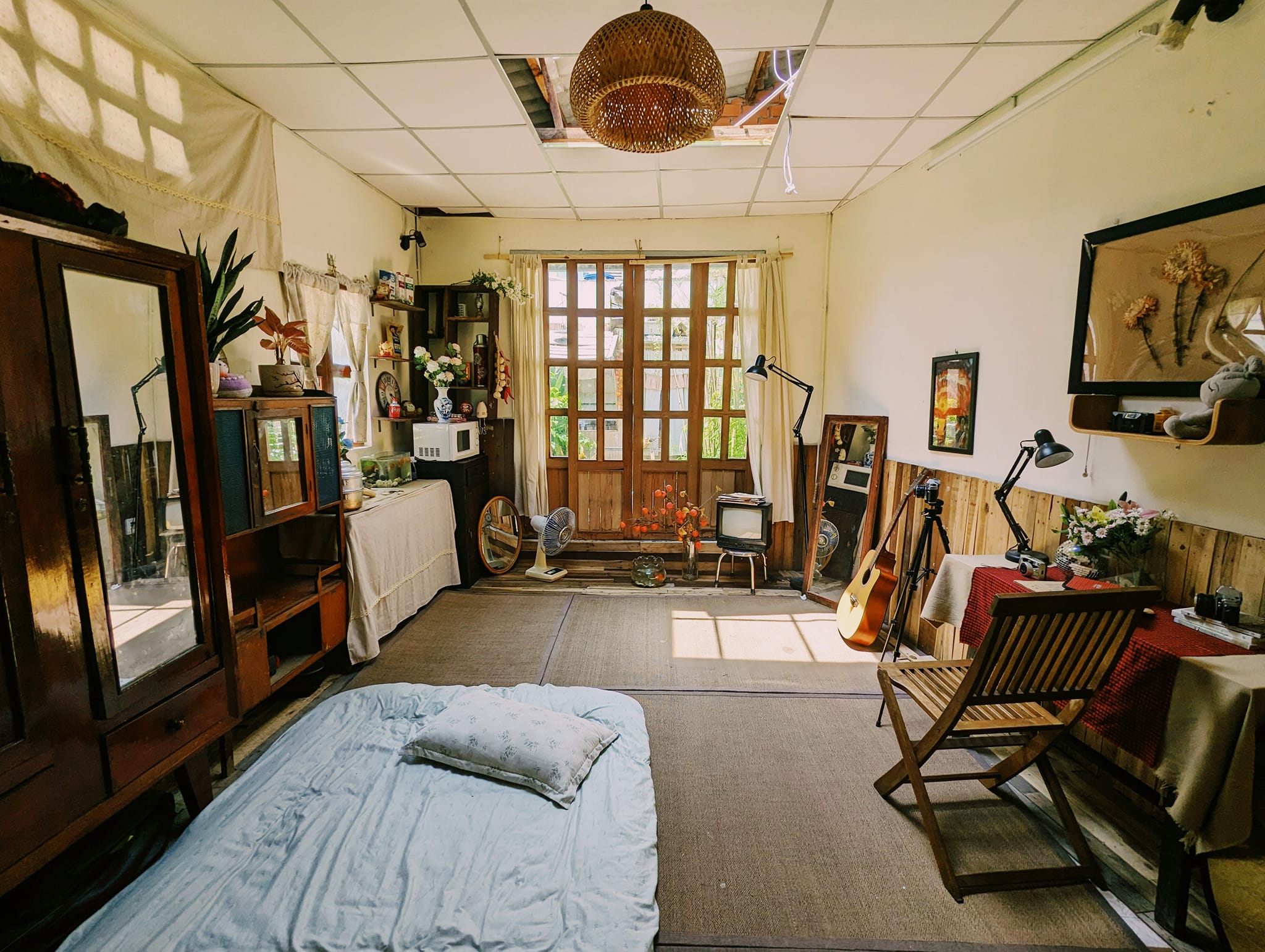 Ngoài để ở, anh Thức còn dùng phòng làm studio thu nhỏ, phục vụ cho sở thích chụp ảnh của mình.