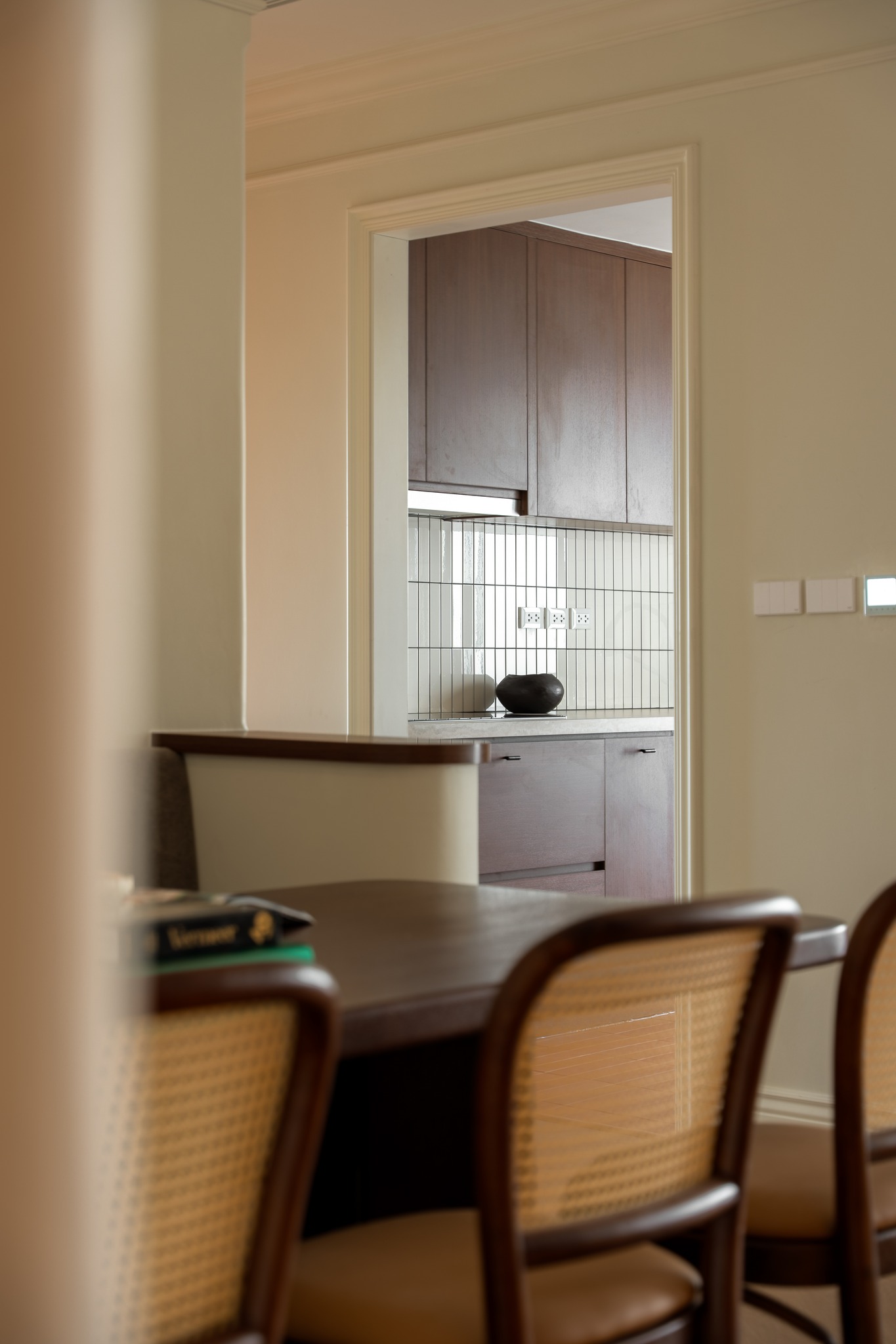Tất cả đều được lựa chọn và kiểm soát kỹ càng từng ly từng tí, không có bất kỳ thứ gì đột ngột chòi ra, phá vỡ trải nghiệm thị giác của cá nhân tôi (dù cho có thể mọi người không nhận ra). Mọi thứ, ở đây bao gồm cả chất liệu vải bọc, chất cảm vải rèm, vải voan, bề mặt đá, chân nhựa chống xước sàn,... đều góp phần tạo nên bầu không khí ấm cúng, thân thiện, dù cho là công trình mới nhưng lại có cảm giác như đã thân thuộc lâu rồi, đã được ở tại nơi đây lâu rồi.