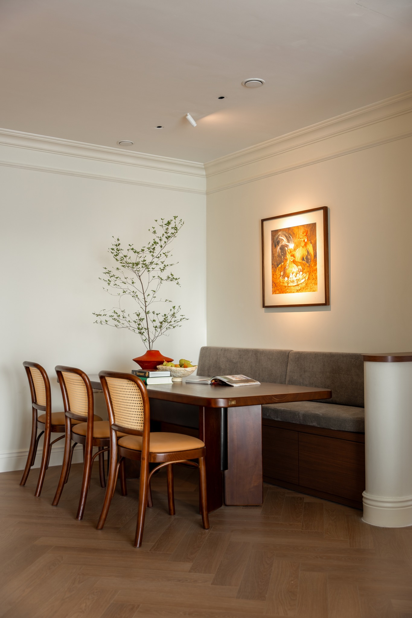 Thay vì lựa chọn phong cách hiện đại, ít đường nét như căn trước, lần này, tôi muốn thử nghiệm và tự mình trải nghiệm sống trong 1 không gian có pha 1 chút đường nét nhấn nhá cổ điển, như những gì mà văn phòng Tùng & Cộng sự thường vẽ gần đây.