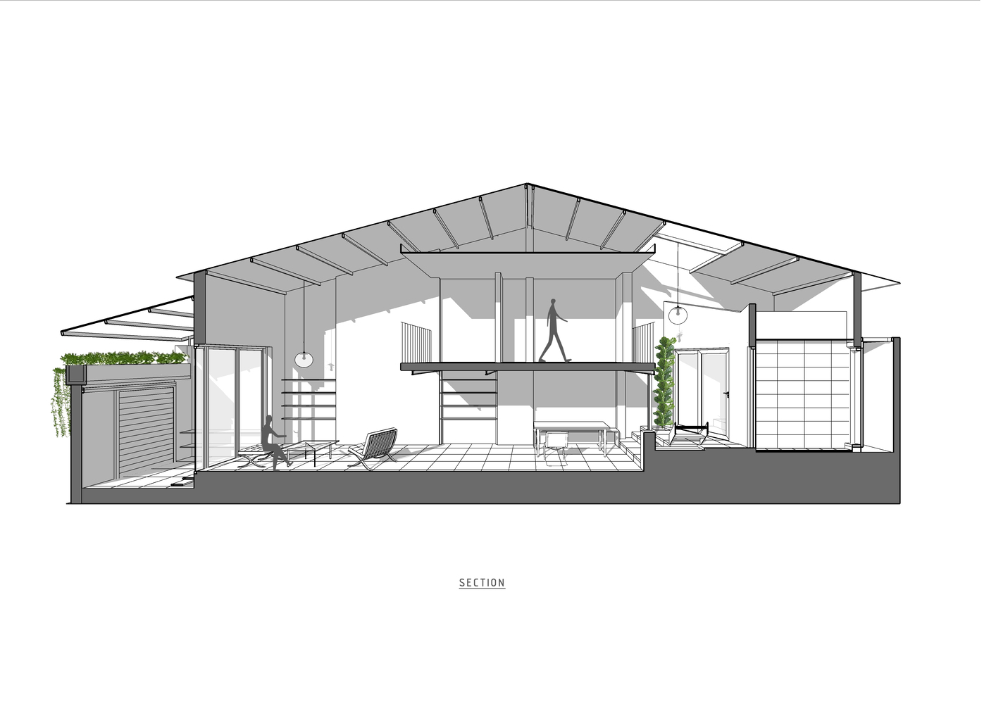 Thay đổi mái nhà giải quyết thành công các vấn đề về ánh sáng và nhiệt độ. Phần khung chính của ngôi nhà bao gồm tường chịu lực và gác lửng không thay đổi. Tầng lửng được gia cố bằng hệ thống dầm cột thép hình chữ I và thay thế phần mái lợp amiang bị hư hỏng. Nâng mái mới cao hơn tạo khoảng trống và giúp thông gió.