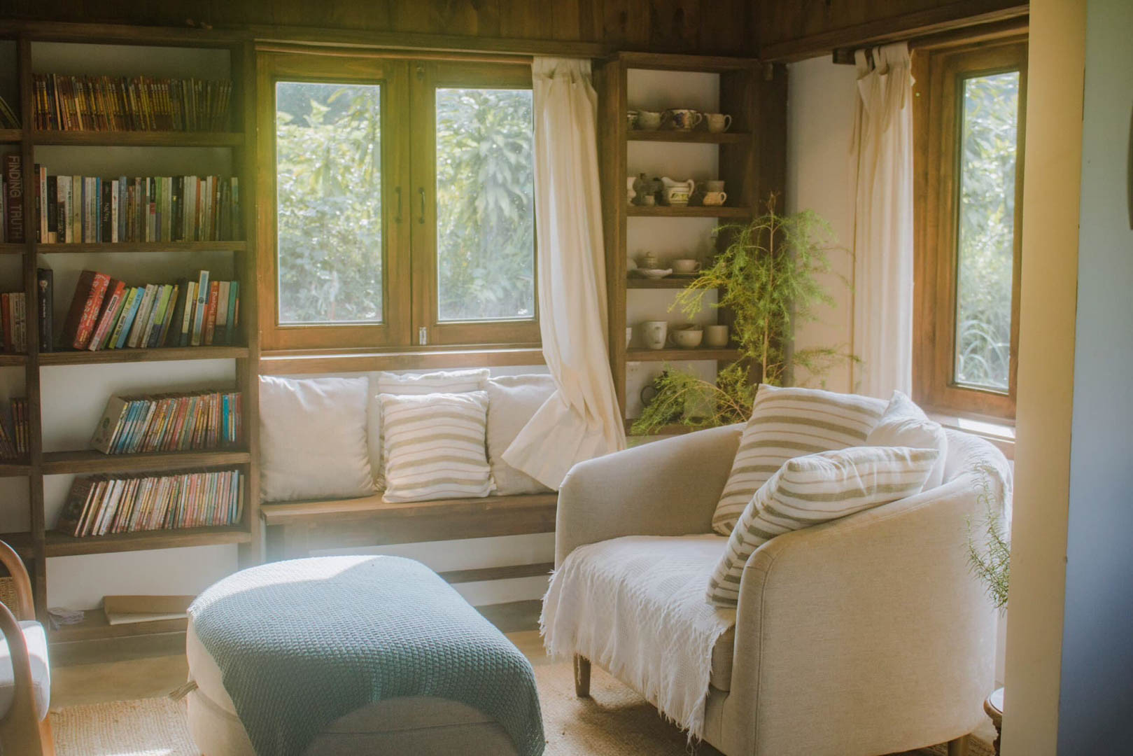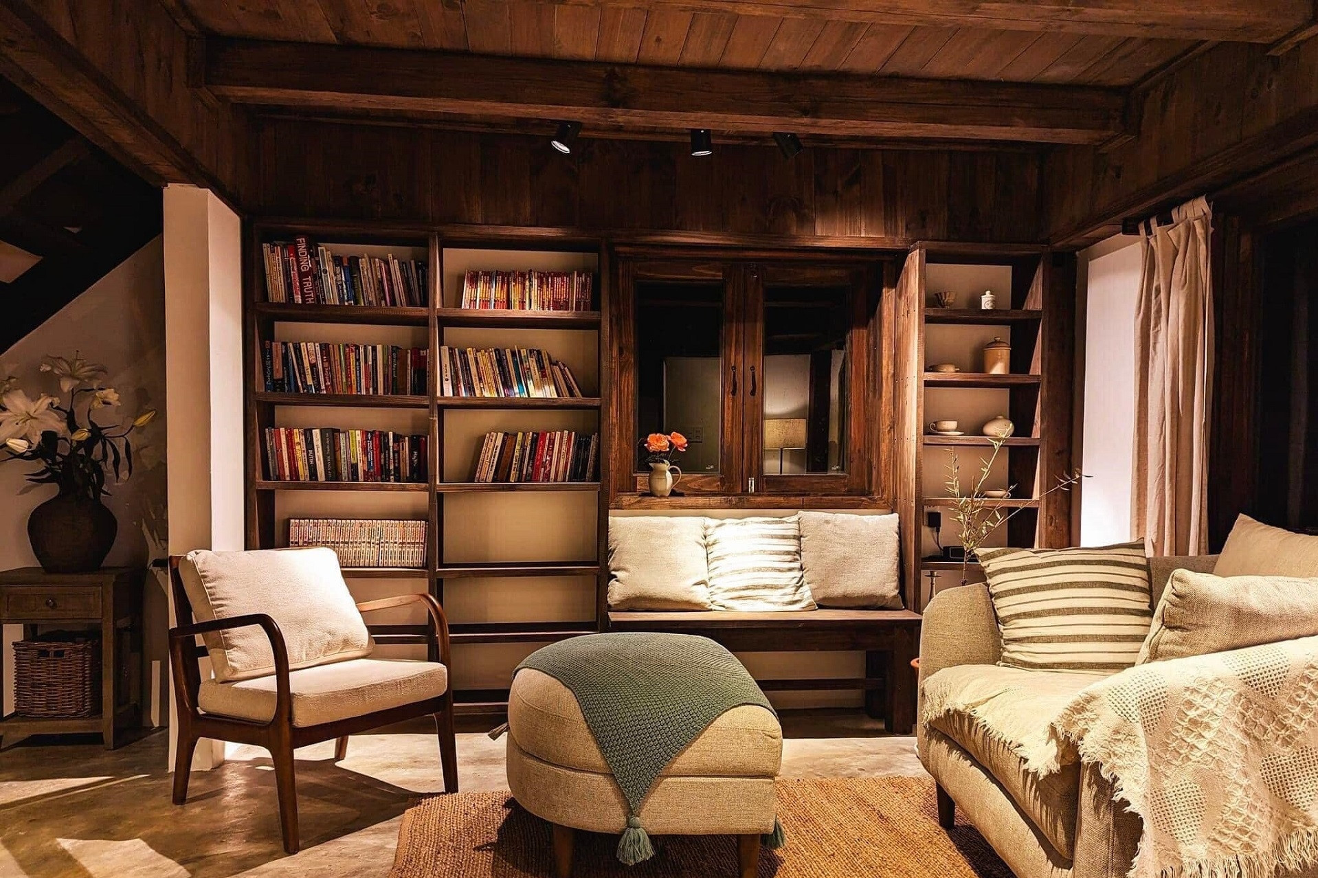 Căn nhà không có phòng khách, thay vào đó là phòng đọc sách rộng.