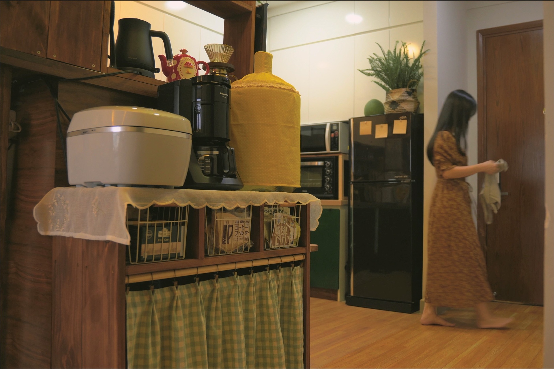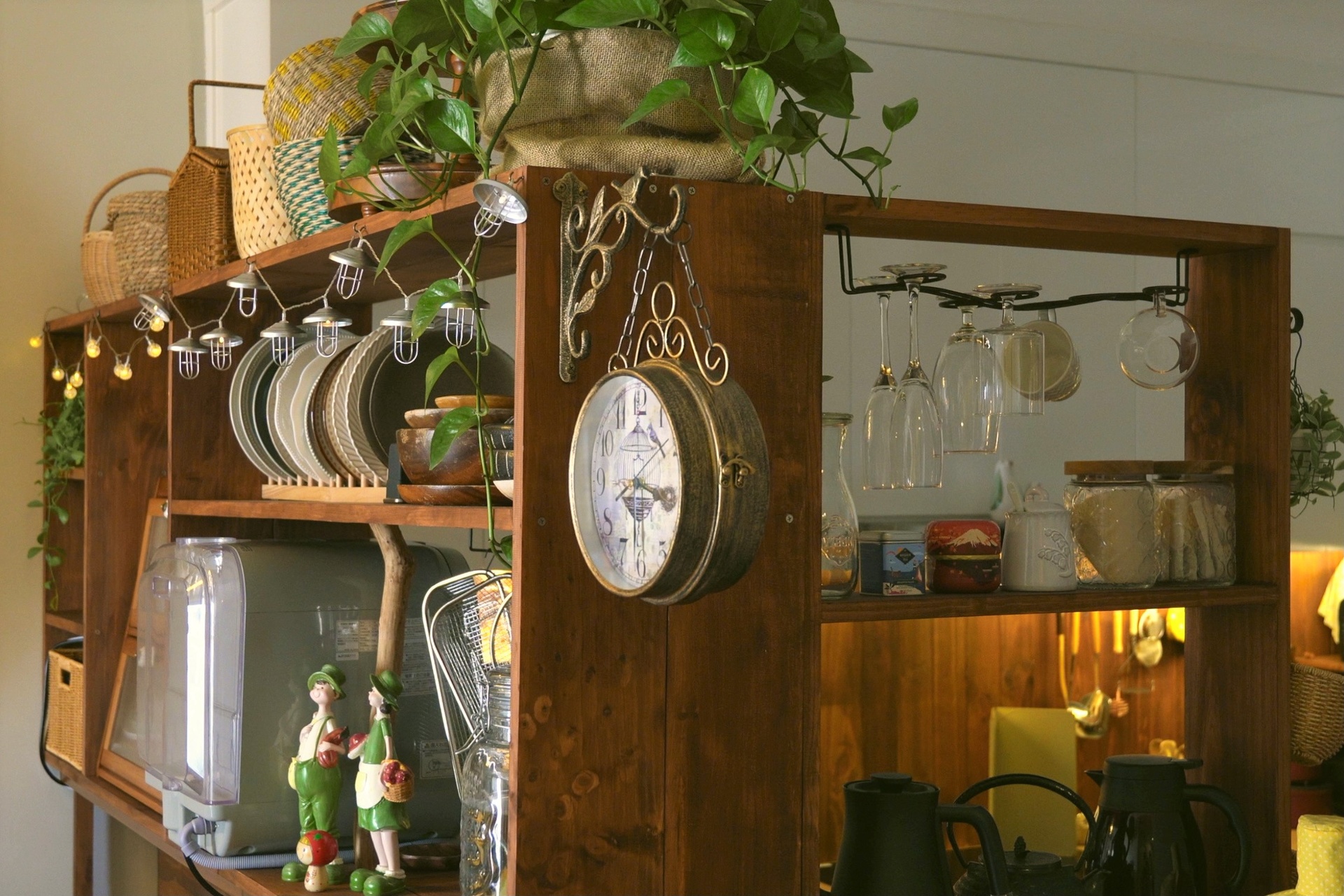Để đồ dùng hợp ý, vừa vặn với không gian cần đặt, Thanh Trúc còn tự đóng một số kệ gỗ hay may các tấm lót, bọc đồ trong nhà. Với bà nội trợ, đây là cách tiết kiệm chi phí, thời gian lau chùi và góp phần khiến không gian trong nhà đậm dấu ấn riêng. "Trừ việc bếp mới rộng hơn thì nó giống với bếp cũ gần 90%. Nhờ vậy tôi không còn cảm giác lạ lẫm trong ngôi nhà mới, mà ngược lại ấm áp thân quen như những ngày trong ngôi nhà thuê đầu tiên của hai vợ chồng", cô chia sẻ.