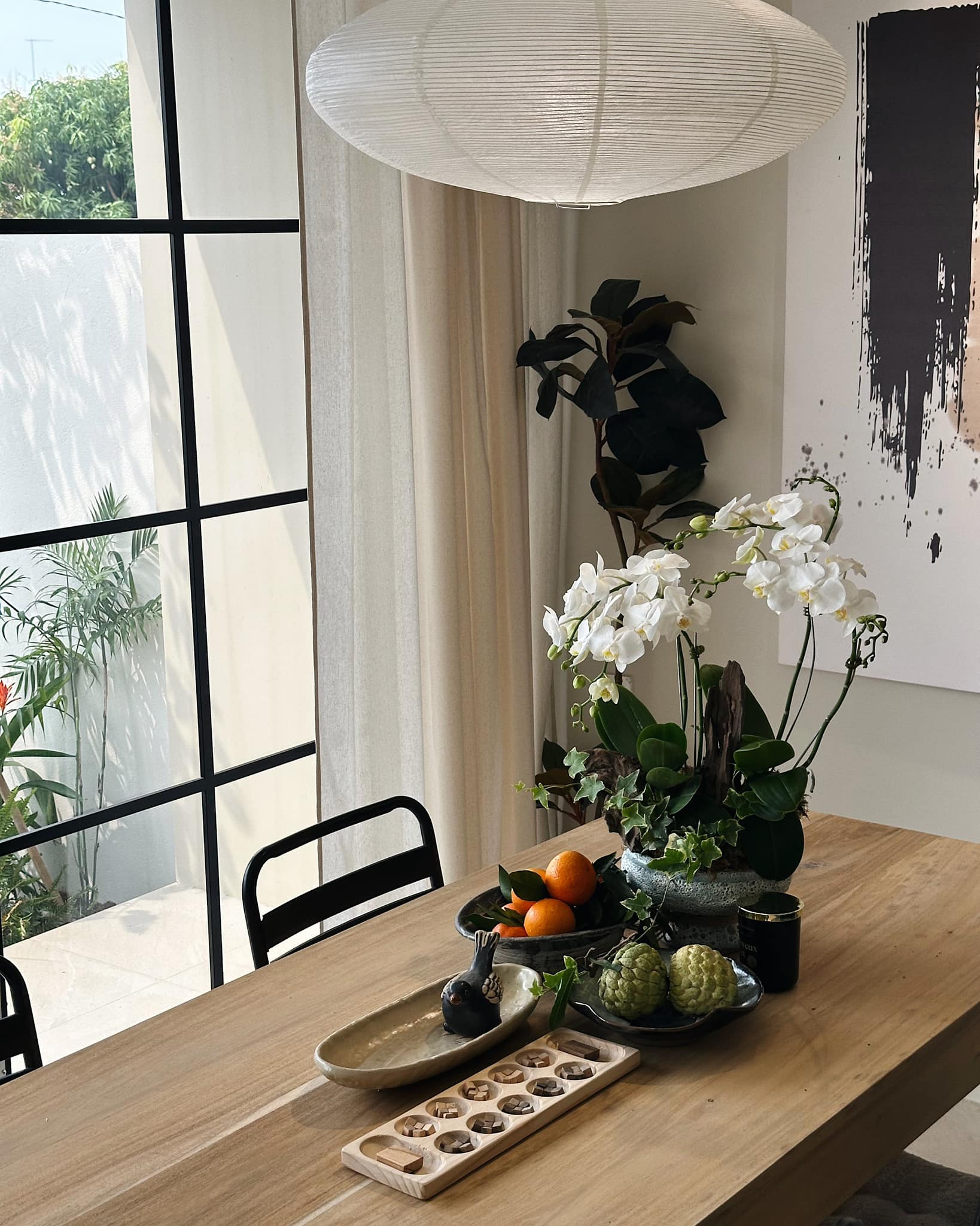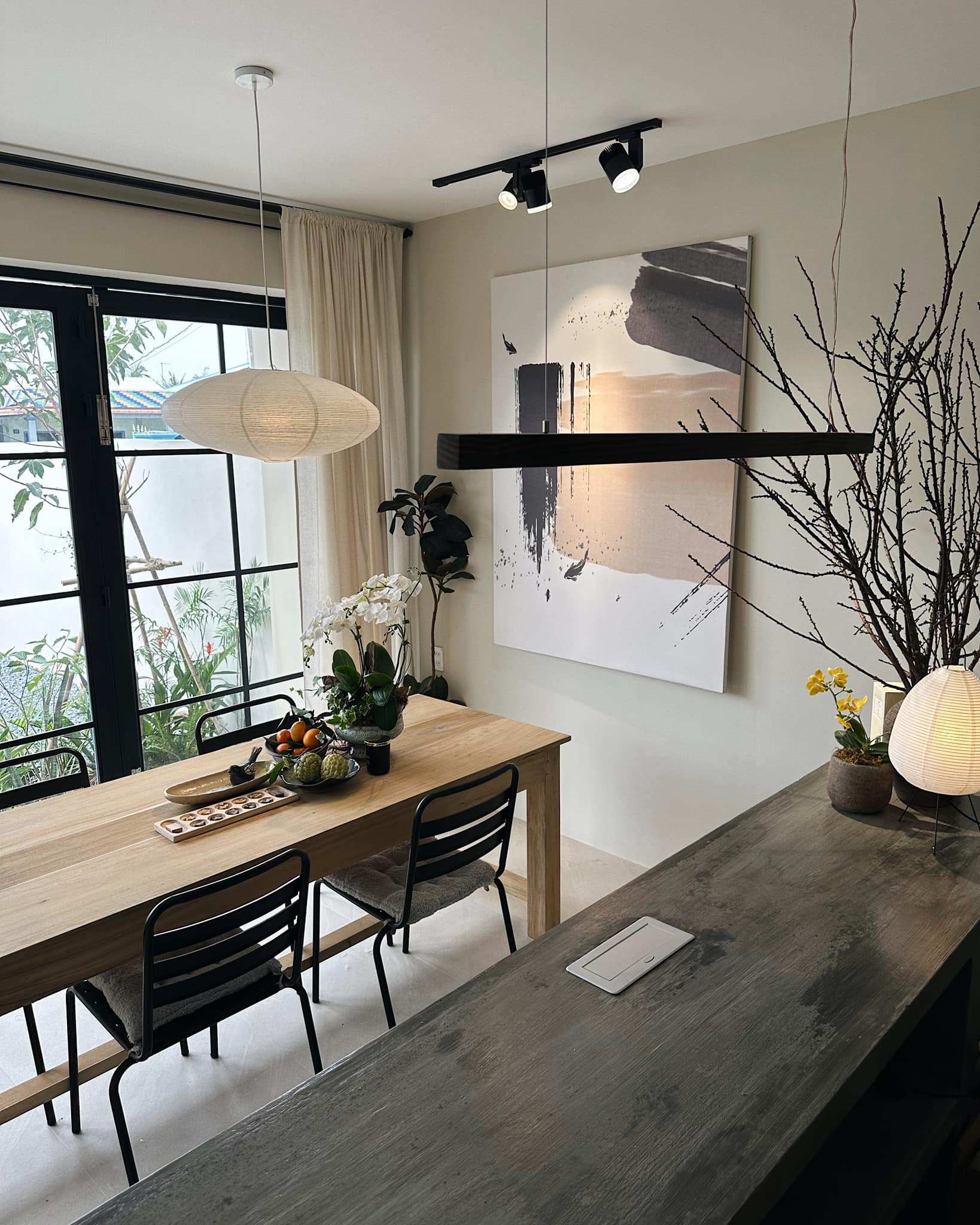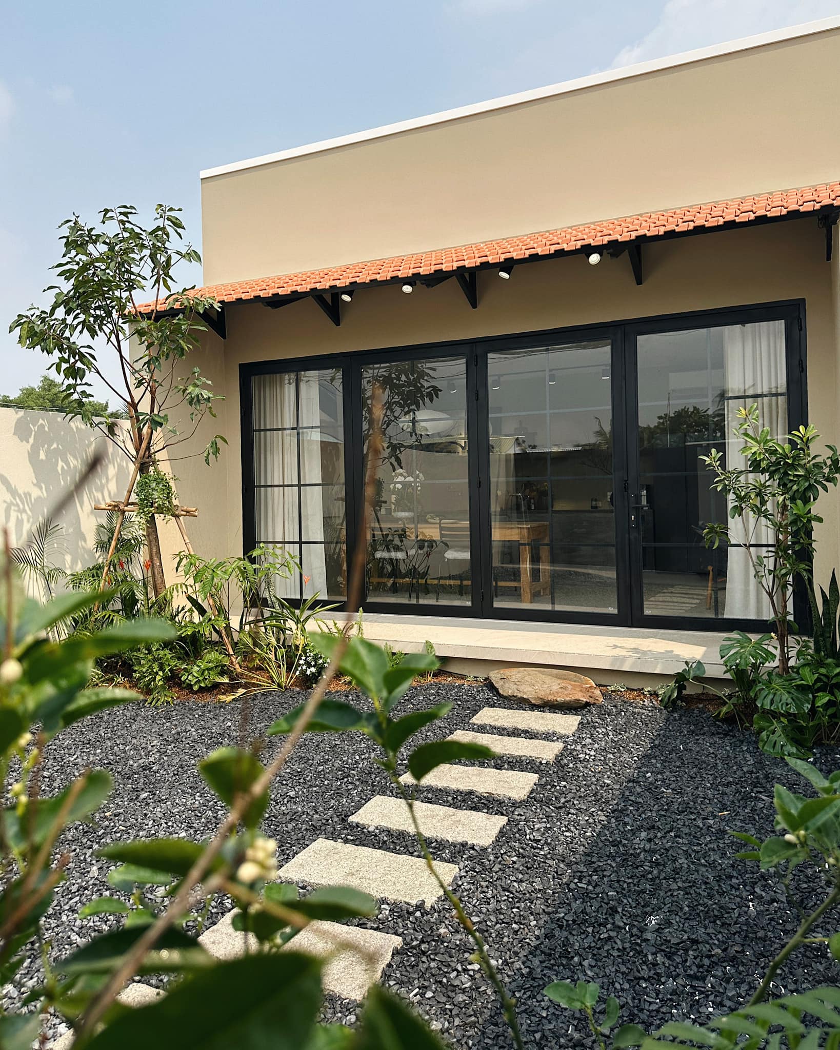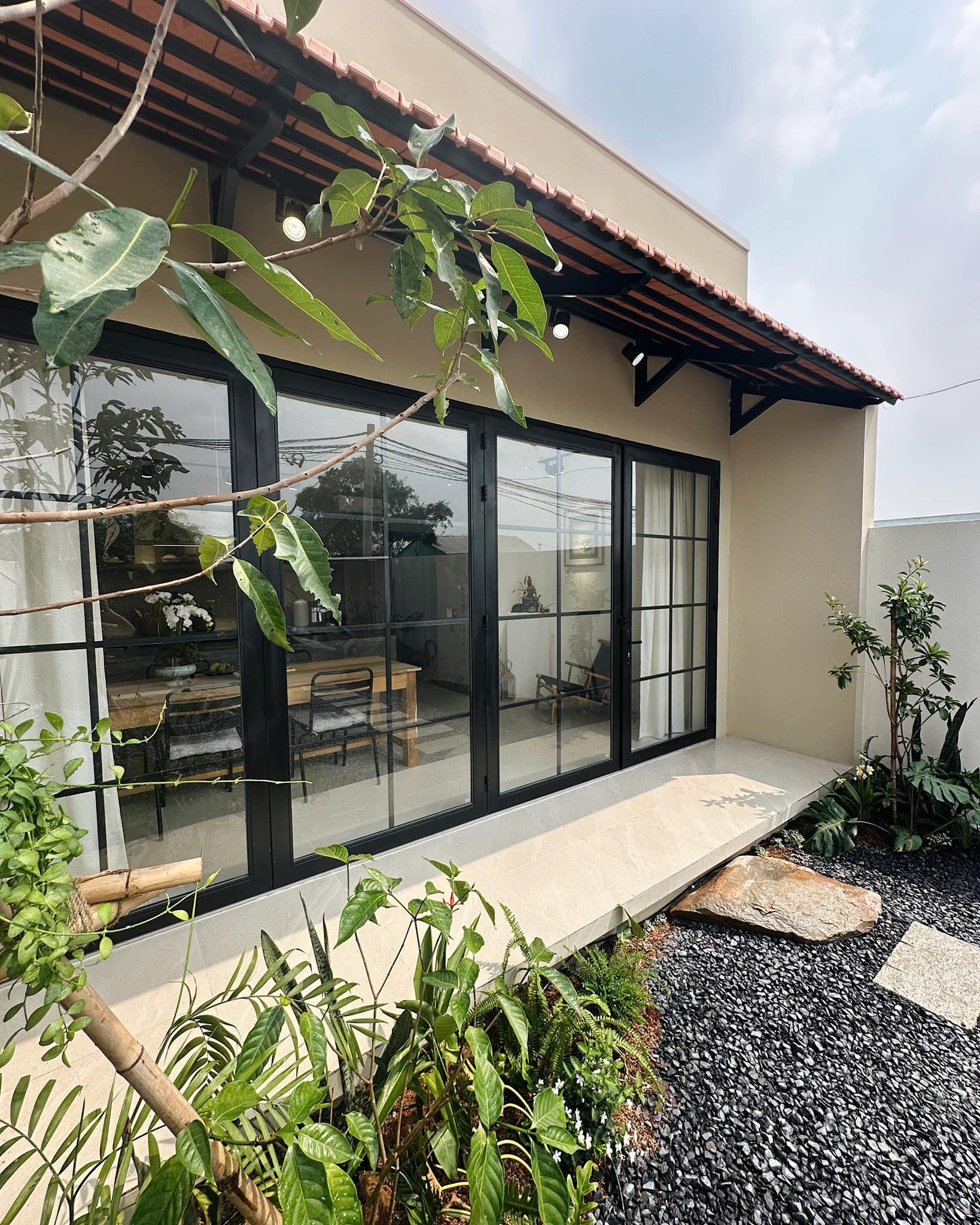 Bi chia sẻ rằng mình thích một không gian kín ngoài nhưng mở trong - tách biệt với ồn ào phố thị nhưng vẫn kết nối với thiên nhiên qua những khoảng mở, ánh sáng và gió trời. Vì vậy, ngôi nhà được chính tay Bi phác thảo, bố trí từng khu vực theo nhu cầu và sở thích riêng, mang đậm dấu ấn cá nhân.