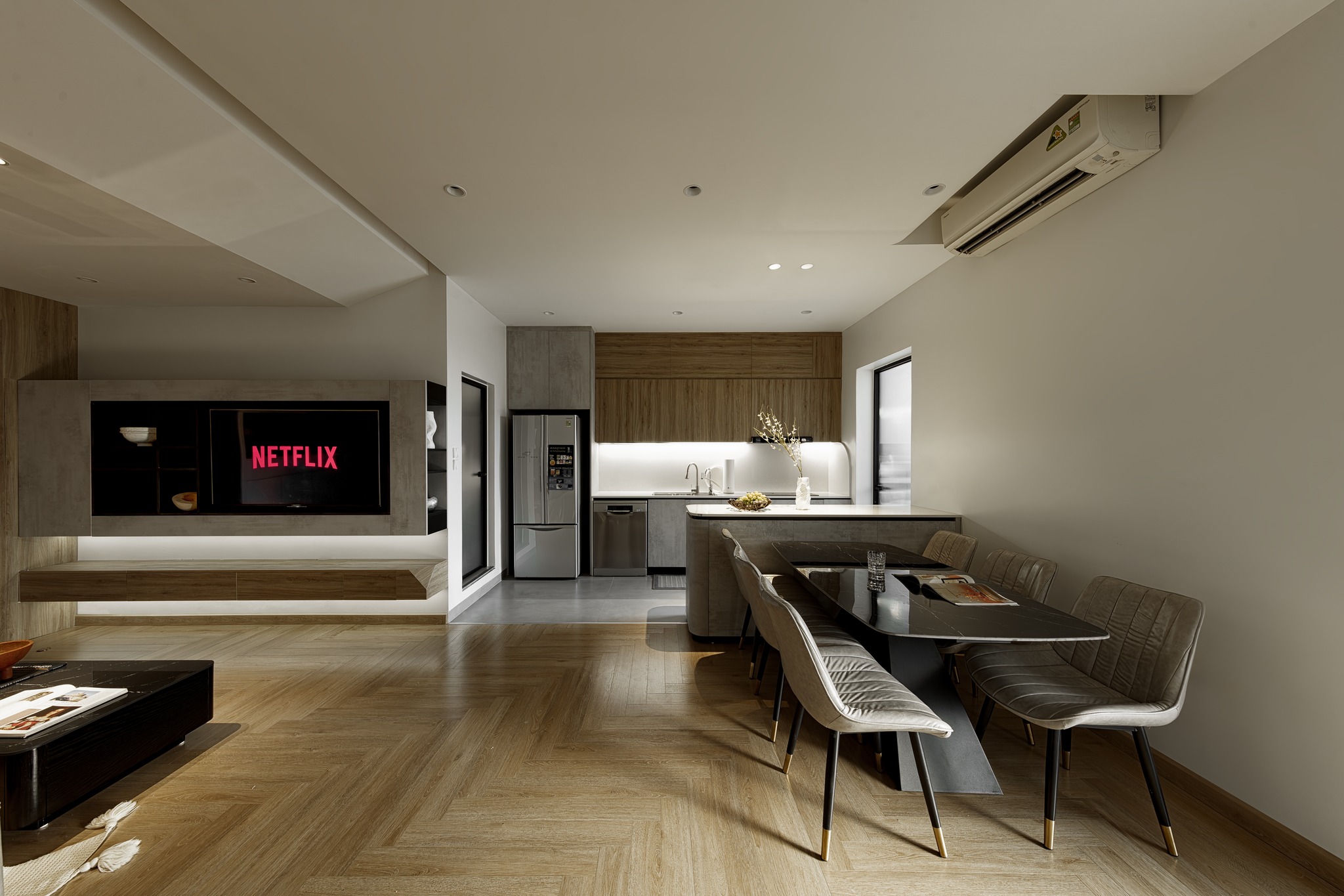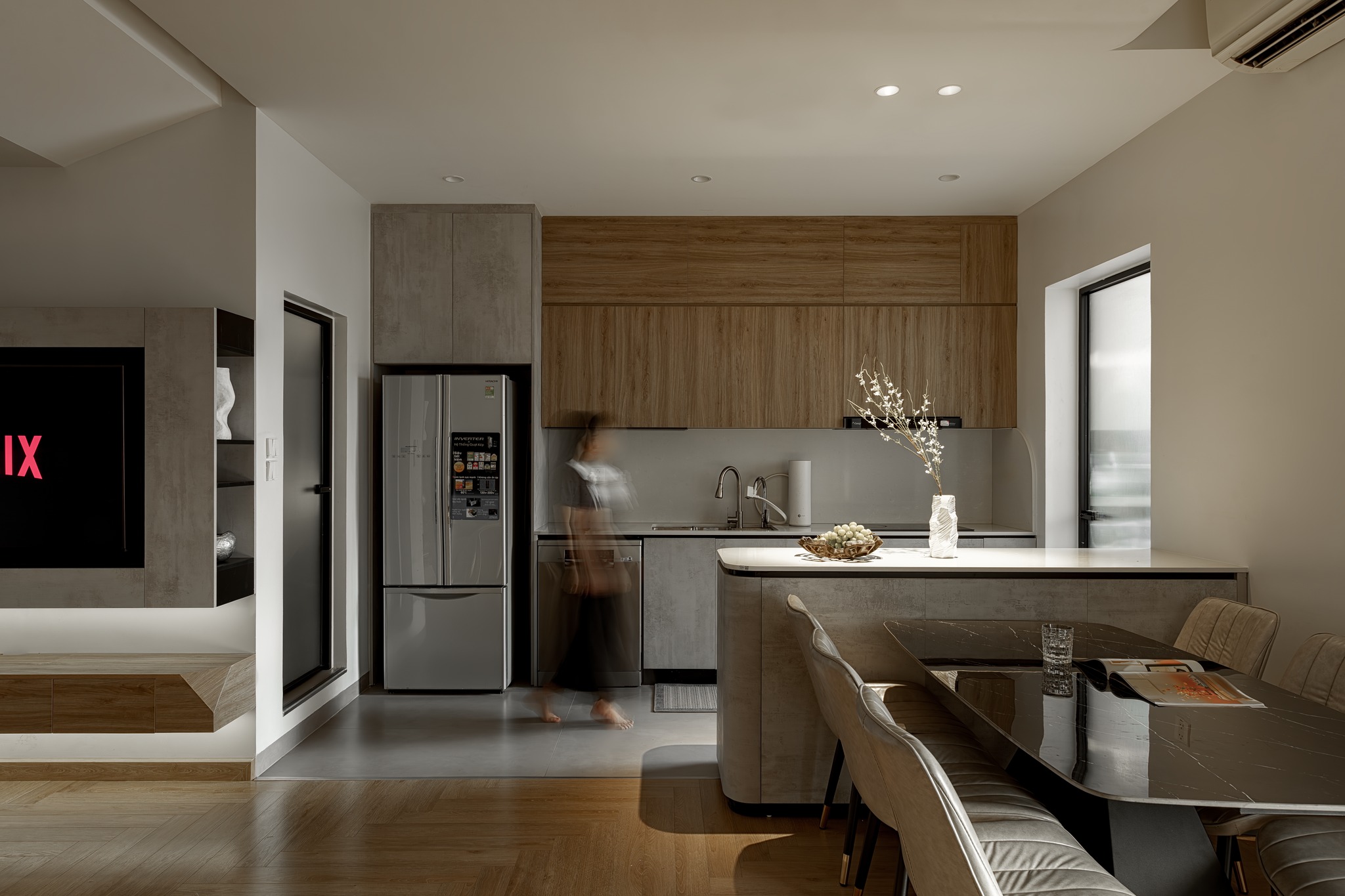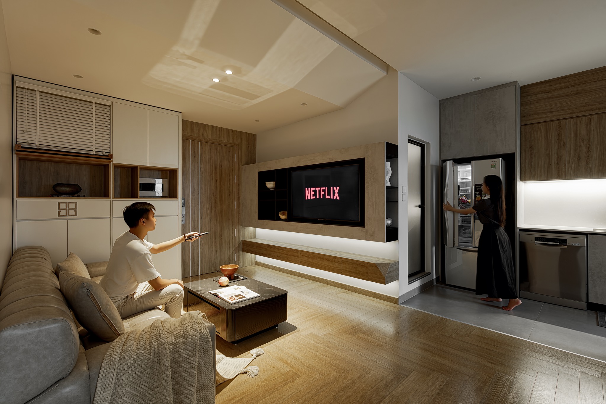 Thay vì chuyển sang nơi ở mới như dự định, anh chị muốn căn hộ hiện tại được "lột xác" thành một không gian sống hiện đại, tiện nghi hơn. Tôi đã lên kế hoạch và cải tạo từng chi tiết, lột bỏ hết gạch ốp tường cũ, sàn gỗ cũ đã kém chất lượng và chọn gạch ốp, sàn gỗ mới đạt chất lượng và thẩm mỹ, hệ thống ánh sáng, bố trí lại nội thất, màu sắc, vật liệu sao cho vừa tối ưu hóa diện tích, vừa tạo được cảm giác ấm cúng.