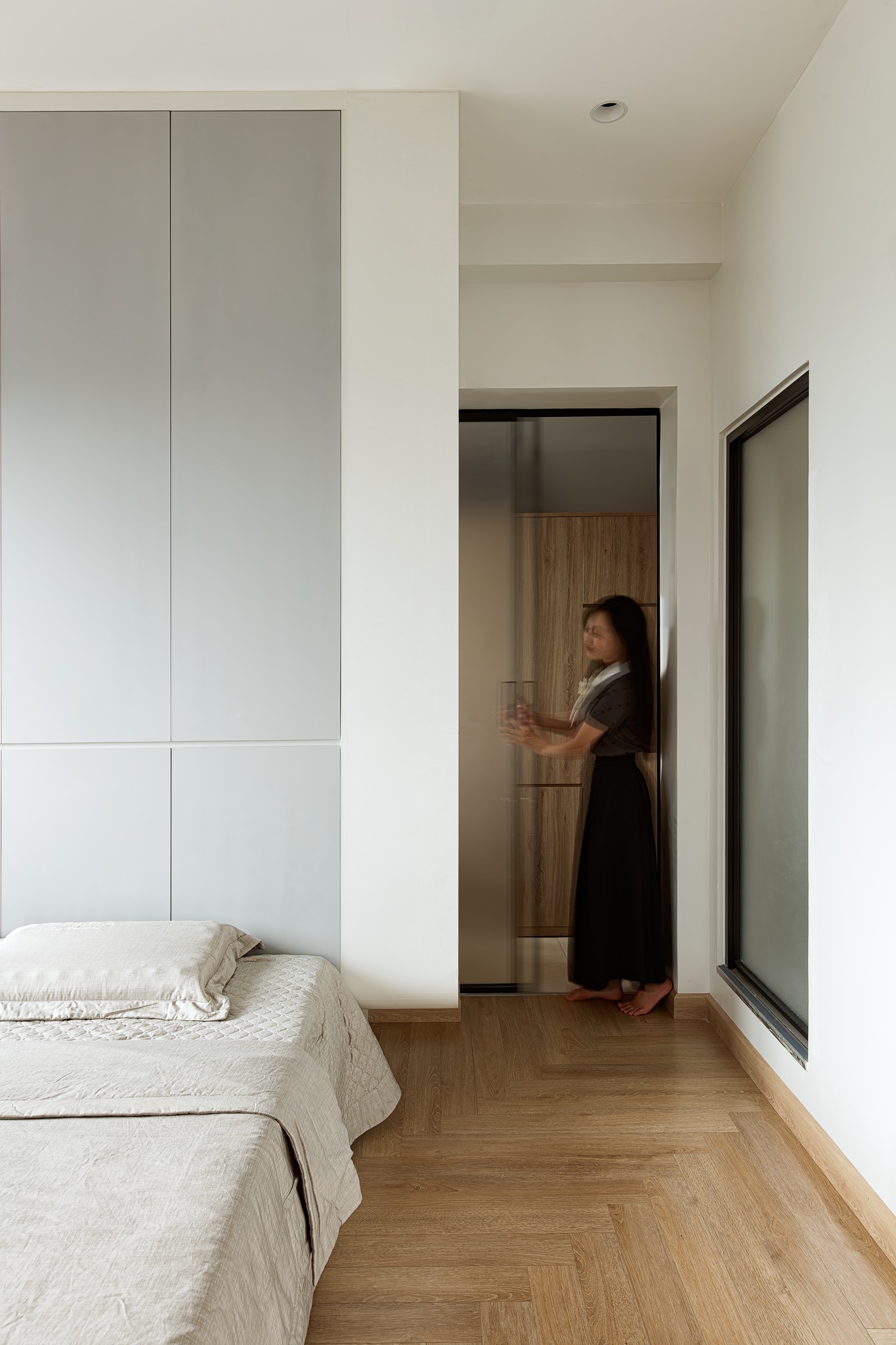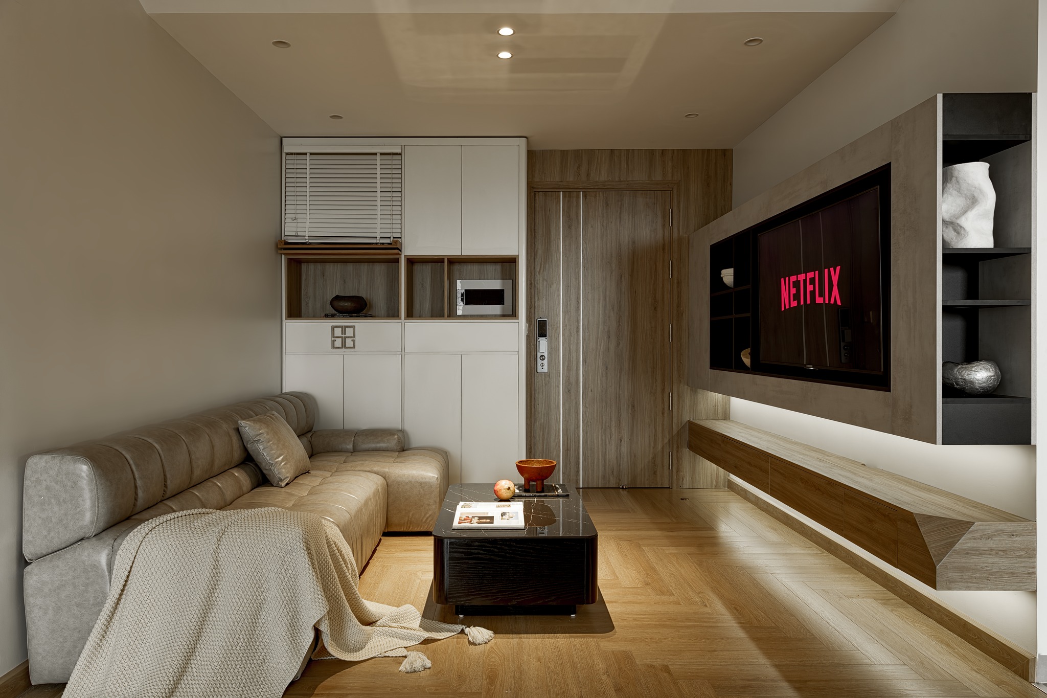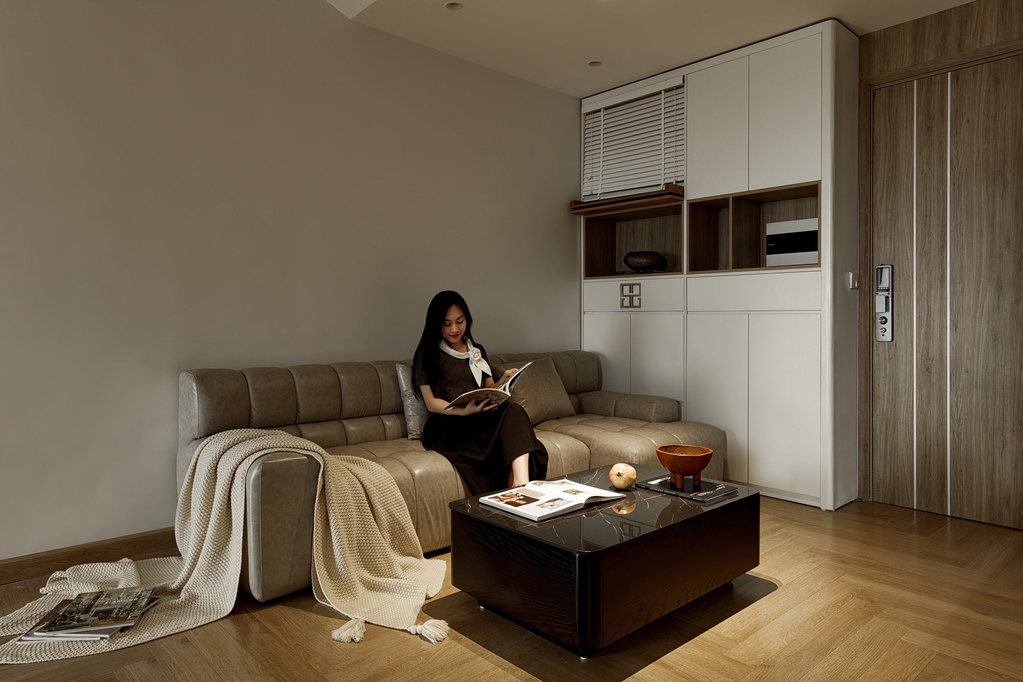 Thay vì chuyển sang nơi ở mới như dự định, anh chị muốn căn hộ hiện tại được "lột xác" thành một không gian sống hiện đại, tiện nghi hơn. Tôi đã lên kế hoạch và cải tạo từng chi tiết, lột bỏ hết gạch ốp tường cũ, sàn gỗ cũ đã kém chất lượng và chọn gạch ốp, sàn gỗ mới đạt chất lượng và thẩm mỹ, hệ thống ánh sáng, bố trí lại nội thất, màu sắc, vật liệu sao cho vừa tối ưu hóa diện tích, vừa tạo được cảm giác ấm cúng.