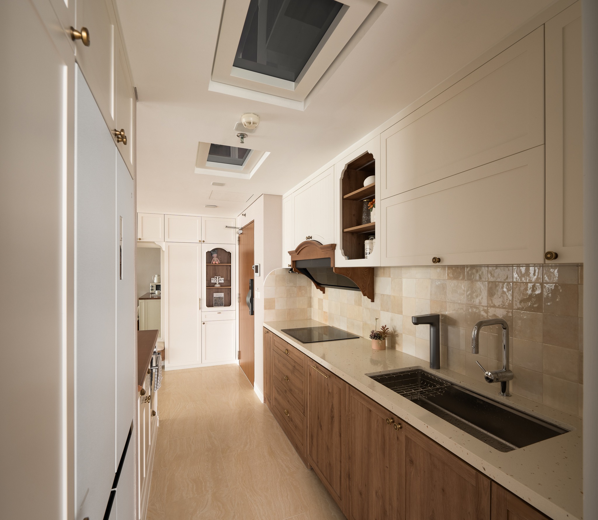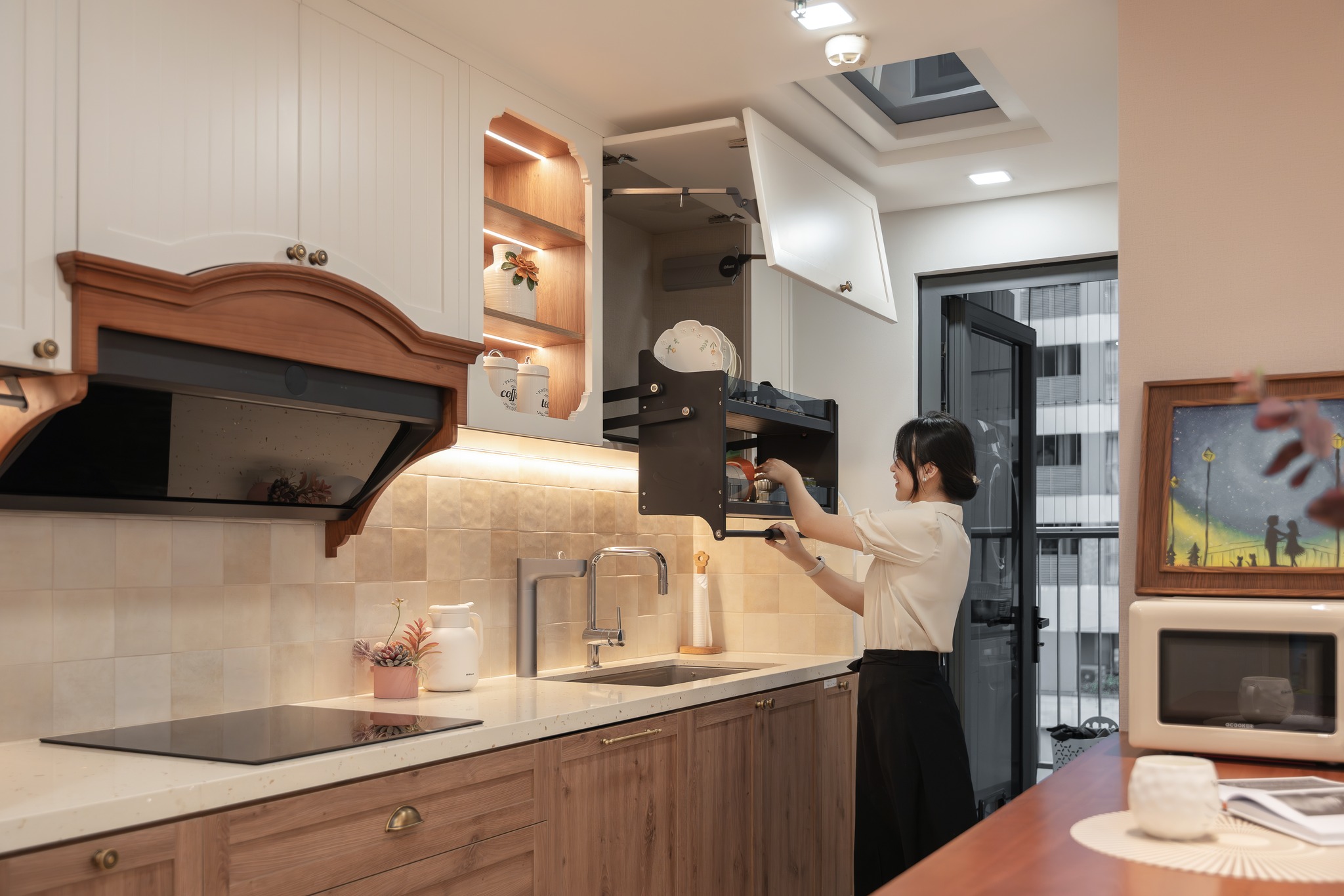 Mỗi không gian chức năng trong nhà đều có tủ, hộc chứa riêng. Các phụ kiện như bản lề, tay cầm, khay để đồ, phụ kiện gia vị, khay để bát, đũa thìa đều được làm từ các vật liệu cao cấp, bền vững.